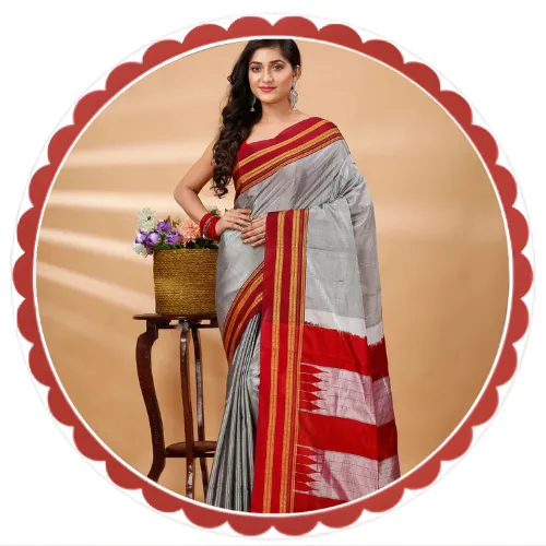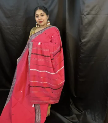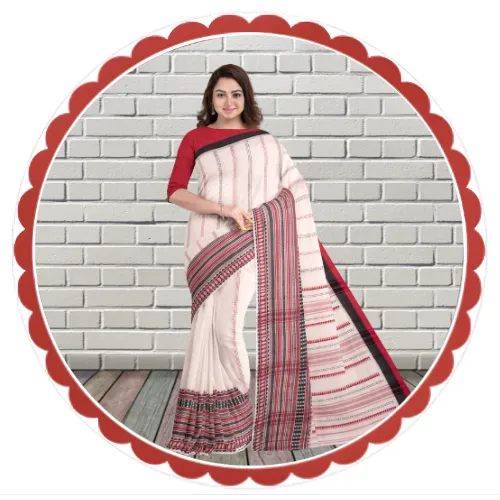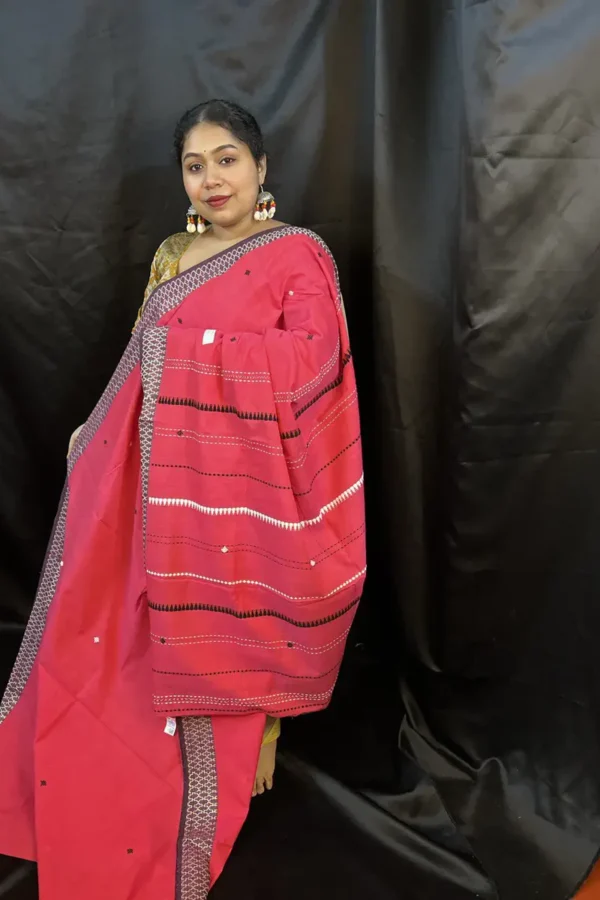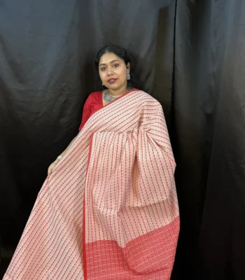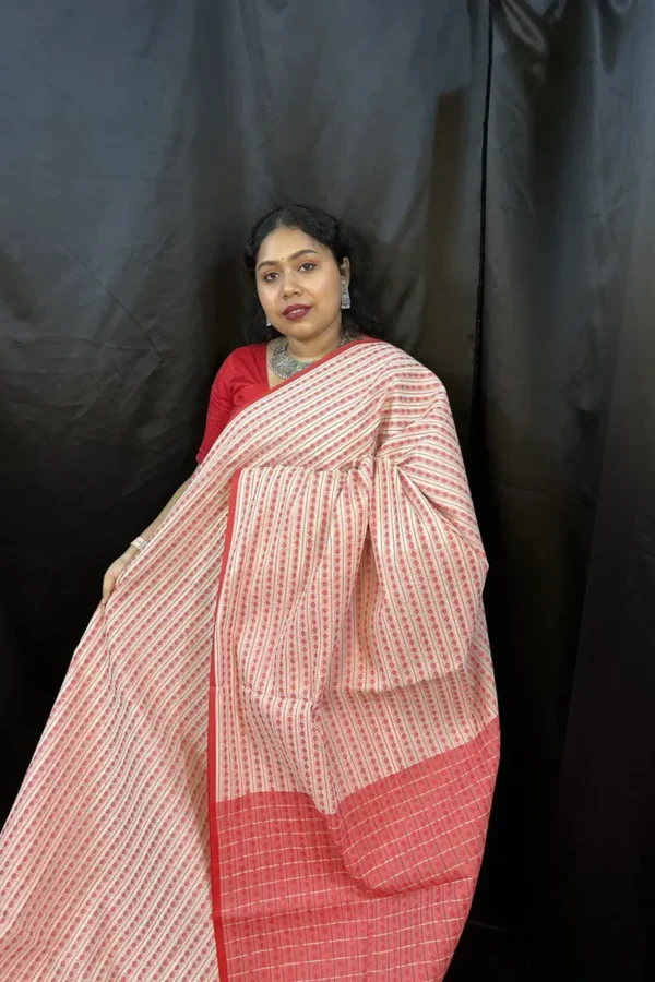 Red & White Handloom Cotton Saree – Traditional Bengali Tant (Artisan Edition) | Vaarnali