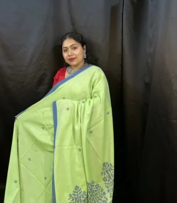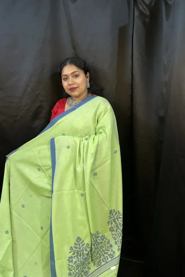 Handloom Saree – Light Green Cotton Saree with Blue Border | Ethically Made