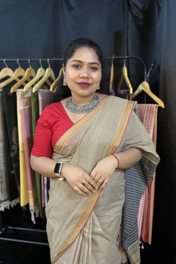 Cotton Saree – Handloom Beige Saree for Office & Occasions