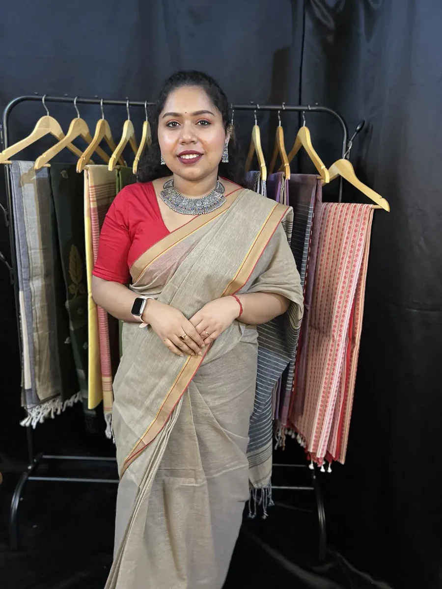 Cotton Saree – Handloom Beige Saree for Office & Occasions