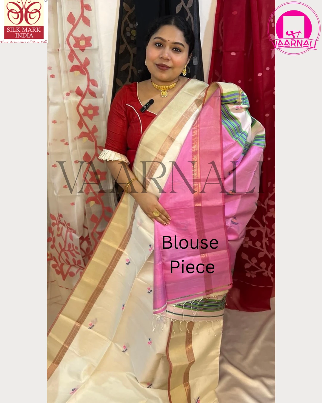 Make this exquisite white pink Kalakshetra saree yours today and experience the unmatched grace of Bengal's finest weaving tradition. Add to cart and let VAARNALI bring you closer to India's rich textile heritage.